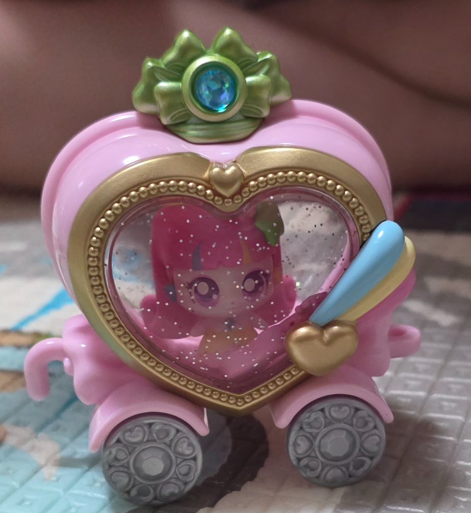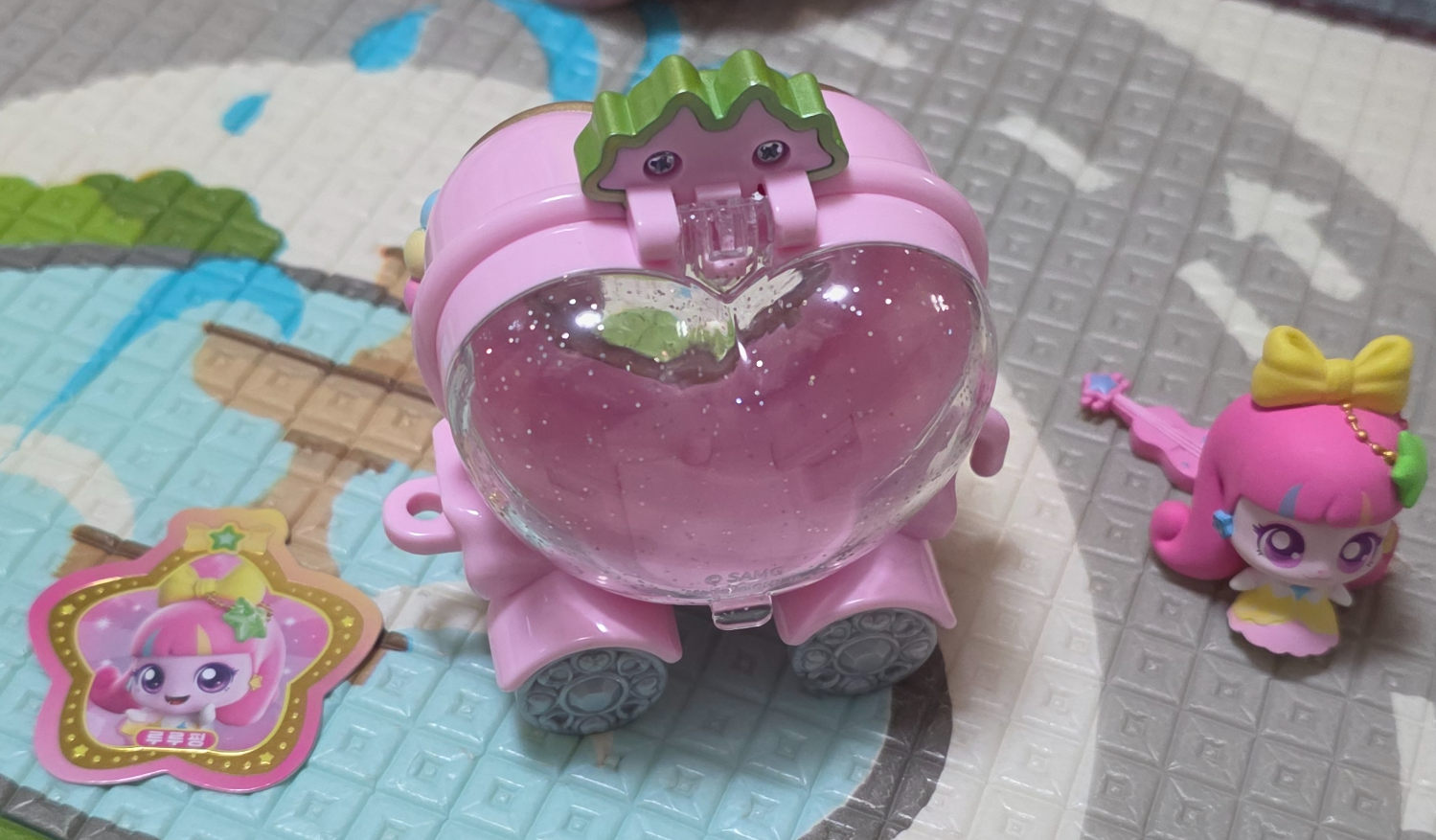 왕자핑은 은하수마차 세트로 구성되어 있는데, 마차, 유니콘, 스타메달, 요술봉, 주전자, 컵, 연결 스트랩 등 다양한 소품이 들어 있습니다. 마차 뒤에는 여러 티니핑 피규어나 소품들을 연결할 수 있어서, 아이가 자신만의 행렬을 만들며 역할놀이를 확장할 수 있어요. 마차를 열면 거울이 나오고, 티타임을 즐기는 설정도 가능해 놀이의 폭이 넓습니다. QR코드로 왕자핑 프로필을 확인하거나, 24종의 QR코드를 모아 시크릿 배경화면을 획득하는 등 디지털 연동 요소도 흥미를 더해줍니다.