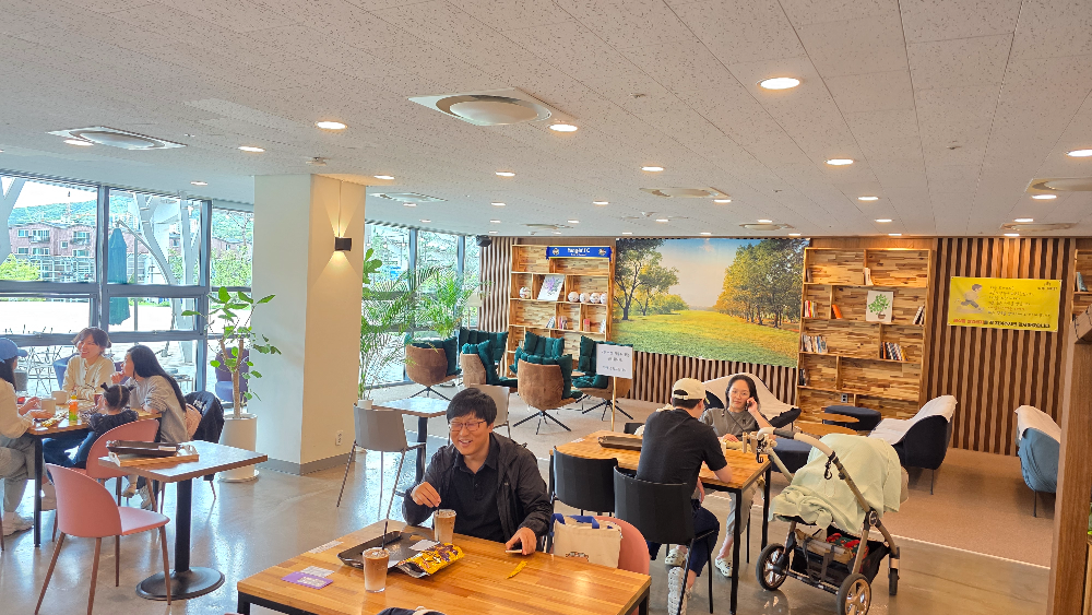 카페 한쪽에는 컬러링존이 마련되어 있어, 어린 동생이나 체험을 마친 아이가 간단한 색칠놀이를 하며 시간을 보낼 수도 있습니다. 또한 쾌적한 화장실, 수유실 등 가족 단위 방문객을 위한 편의시설도 잘 갖추어져 있습니다.