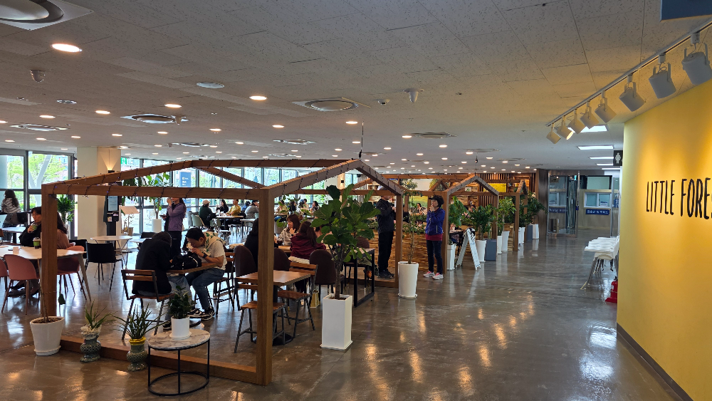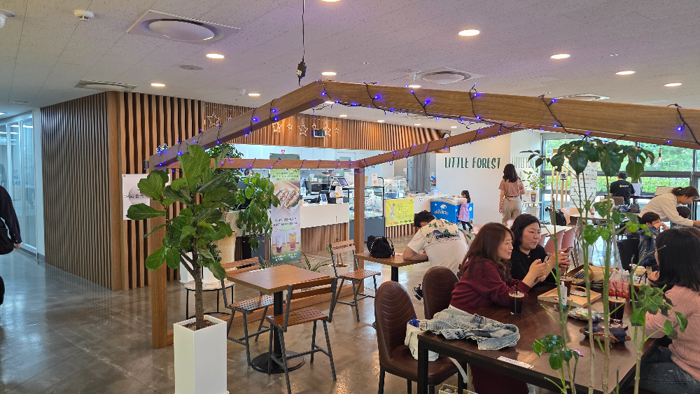 상상의 숲은 아이들이 혼자서 체험 프로그램에 참여하는 경우가 많아, 부모님들은 자연스럽게 카페에서 시간을 보내게 됩니다. 리틀 포레스트 카페는 이런 부모님들을 위해 편안한 소파와 테이블, 따뜻한 조명, 조용한 분위기를 제공합니다. 창밖으로는 상상의 숲 전경이 내려다보여, 아이가 체험을 마치는 동안 여유롭게 커피 한 잔을 즐기며 기다릴 수 있습니다.