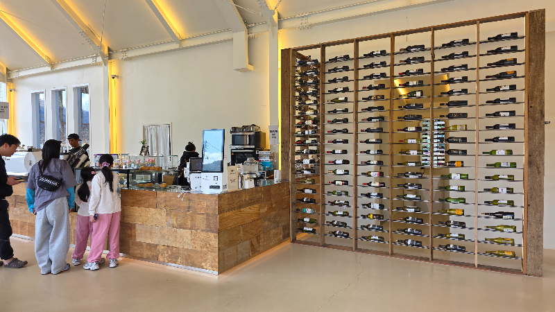 - 층고가 높고 내부가 넓어 시원한 느낌을 주며, 앤틱한 가구와 우드톤 인테리어, 곳곳에 놓인 와인병, 대형 트리 등 감각적인 소품이 분위기를 더합니다