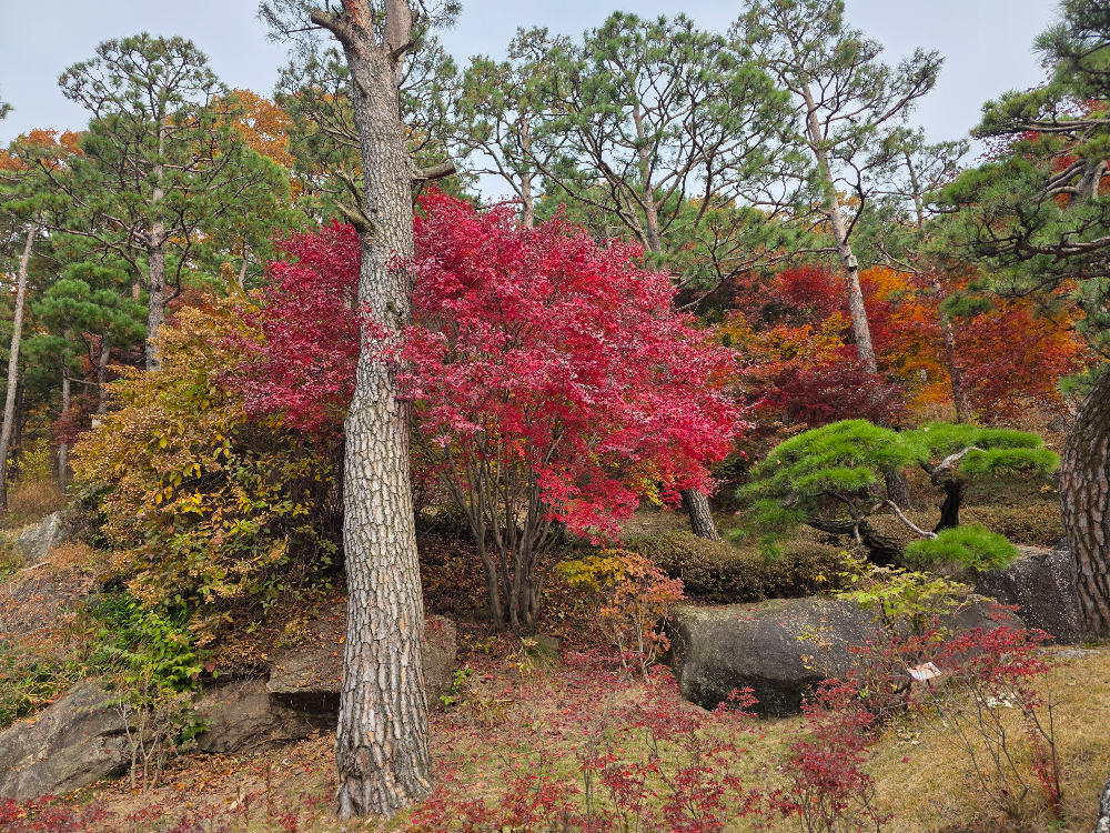 화담숲은 한 폭의 그림 같은 풍경으로, 관리가 잘 된 자연의 위엄을 느끼게 합니다. 나무마다 각기 다른 색으로 물들어 있으며, 데크와 조경이 꼼꼼하게 정돈되어 있어 ‘돈이 보이는 자연’이라는 슬로건이 괜히 생긴 게 아니구나 싶었습니다.