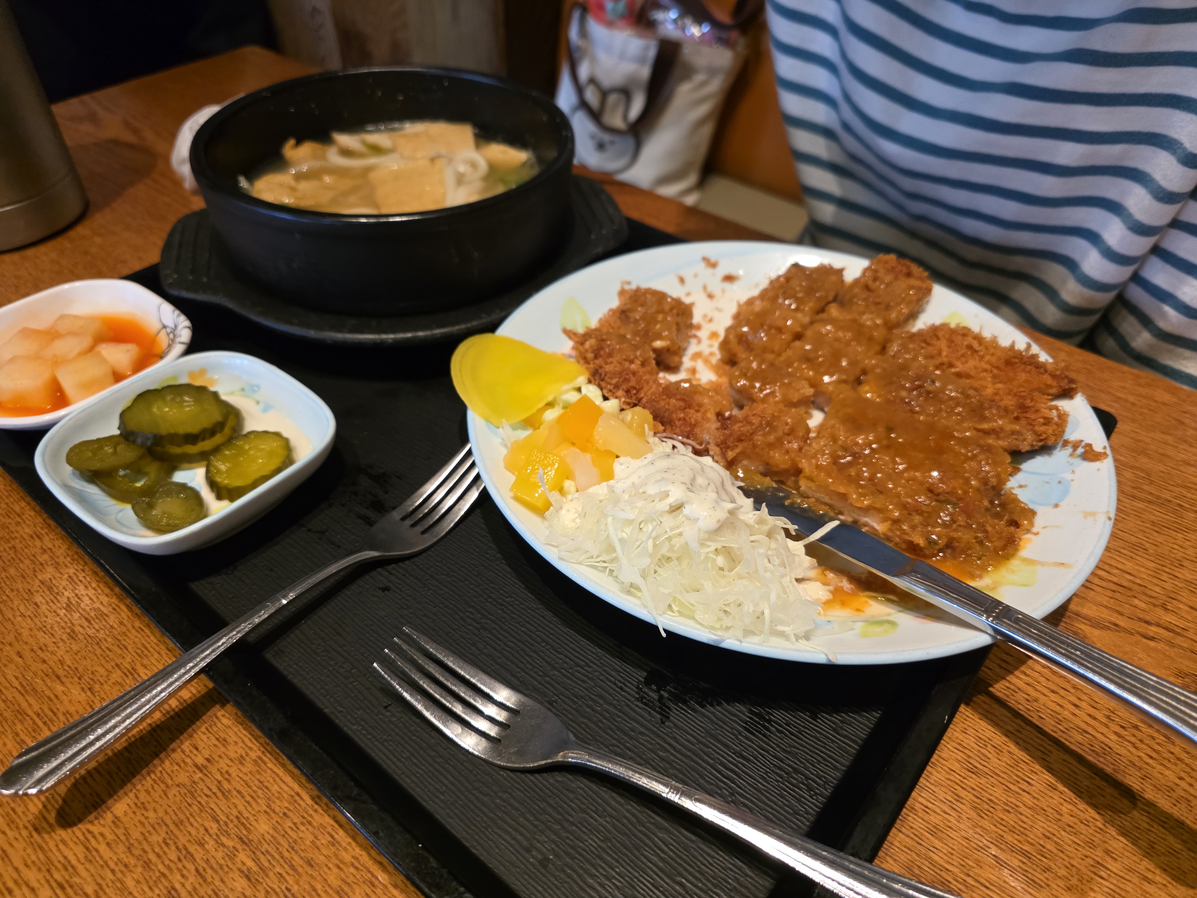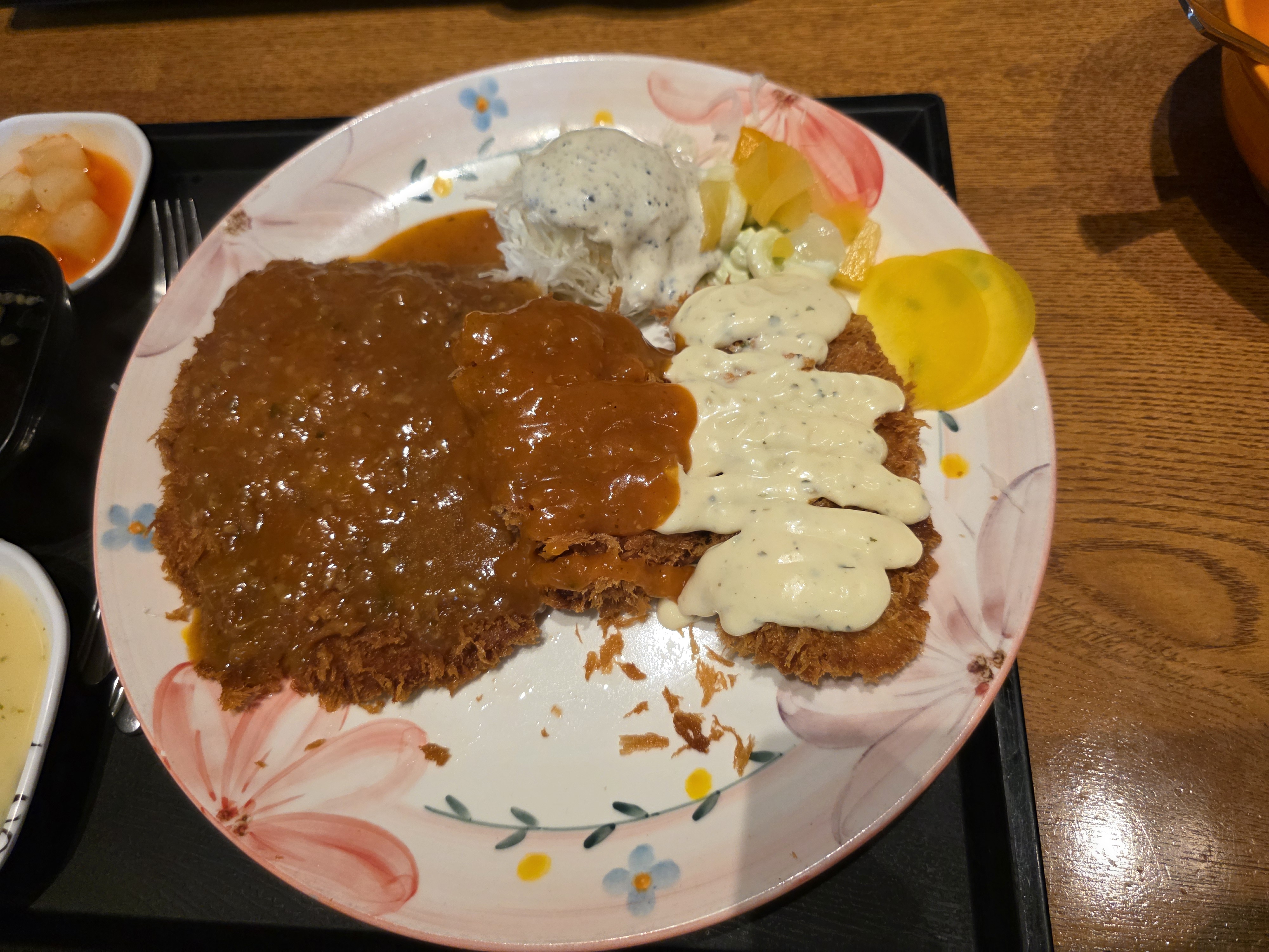 대표 메뉴인 ‘여행돈까스’는 크기가 큼직하고 두께도 적당해, 한 접시만 먹어도 꽤 배가 부른 편이다. 겉은 바삭하고 안은 부드럽게 튀겨 내는 스타일로, 수제 소스와 함께 먹으면 옛날 경양식 돈까스 특유의 향수도 느낄 수 있다.