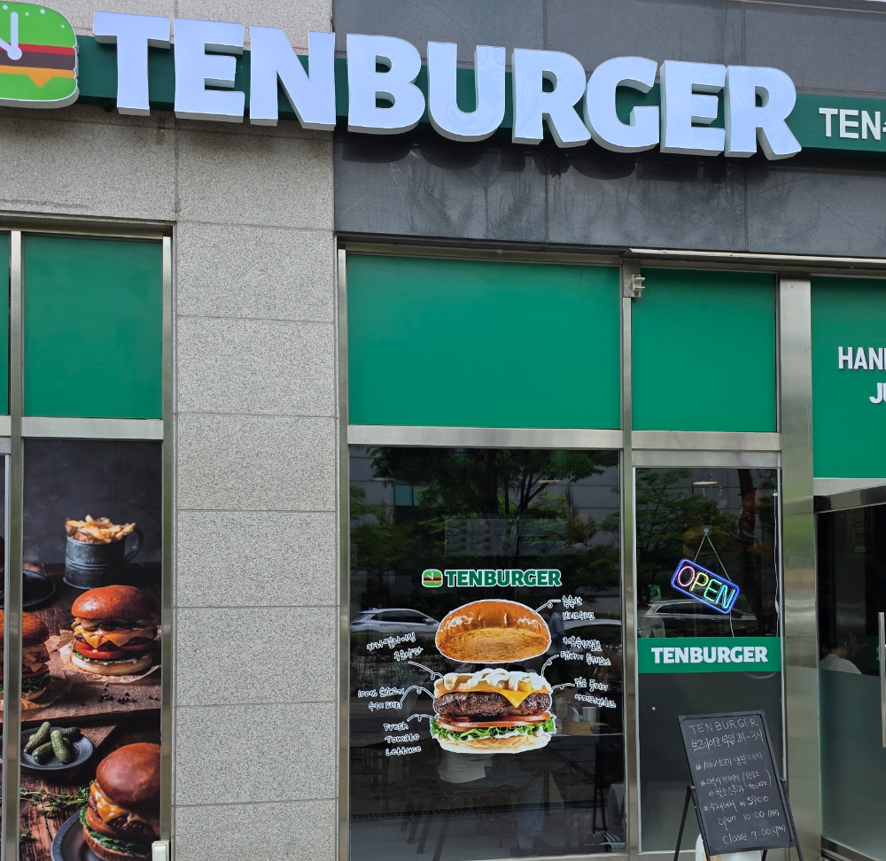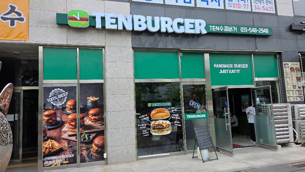 최근 고색동 델타플렉스에 새로운 수제버거 전문점 ‘텐버거(TEN BURGER)’가 문을 열었습니다. 이름이 다소 생소하게 느껴질 수 있지만, 실제로는 체인점 형태로 운영되는 곳으로 보이며, 직접 조리한 수제버거를 판매하는 매장입니다.