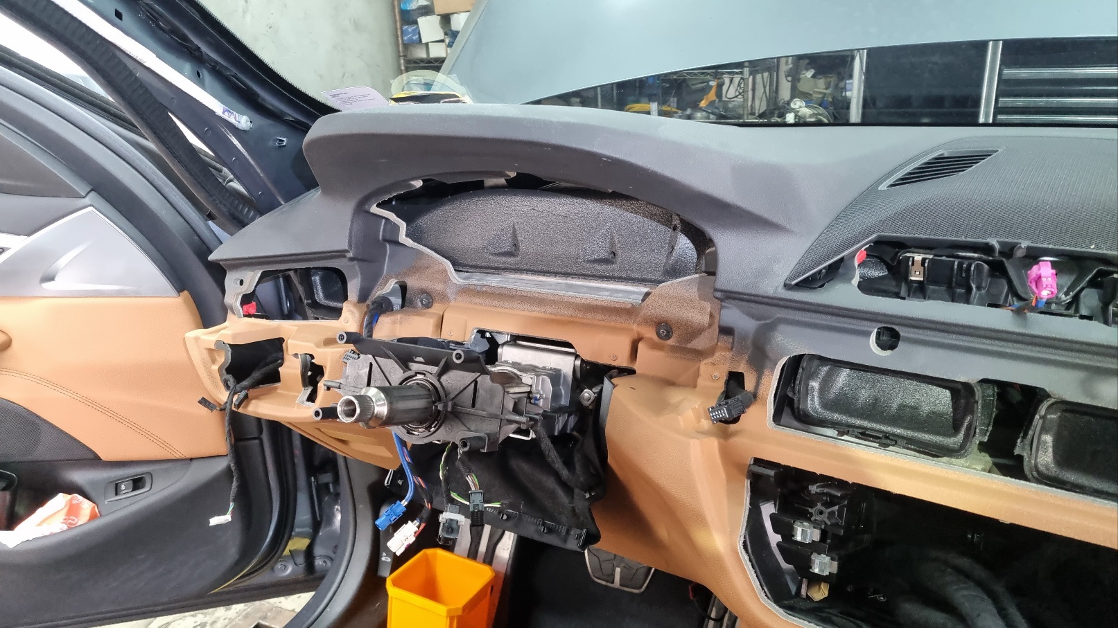 - 대시보드 전체 탈거: 핸들, 계기판, 센터콘솔, 에어백 등 주요 부품 해체 필요